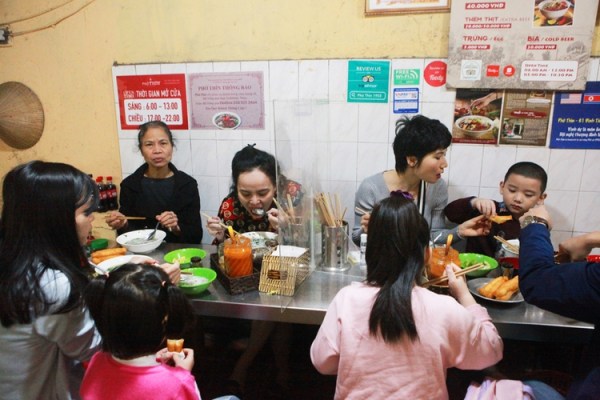Tuy nhiên, sáng nay (25/4), do khách đến quá đông, những thực khách ngồi cùng một bên bàn khá gần nhau.